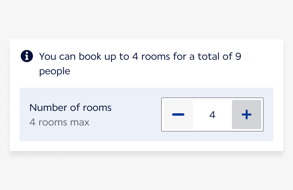 Use a Number Input when users need to adjust a quantity or numeric value in small steps, such as selecting the number of items, passengers, or units.